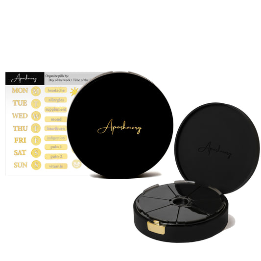 You have countless customization options using the Aposhacary sticker sheet, included for FREE with the purchase of any pill organizer case. Most pill organizers come with pre-marked compartments for days of the week. Using our stickers, you can customize each compartment in a way that works for YOU.